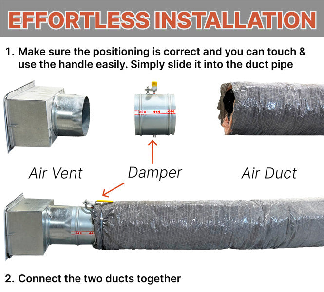 Manual Airflow Adjustment: Enjoy a comfortable environment with our damper sleeve, designed to use the manual handle on the valve to adjust the air volume from multiple angles. This is helpful to control room temperature and stop the backdraft. It is also important to know that the damper sleeve should be installed in places where you can easily control the handle.